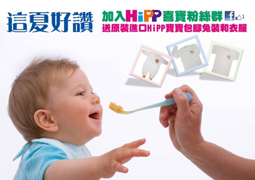 只要加入「HiPP喜寶嬰兒食品~有機 免敏 好味道」粉絲團,在活動期間內按讚並留言,就有機會獲得歐洲原裝進口的HiPP寶寶包腳兔裝和寶寶長袖衣服,等您來拿好禮唷!