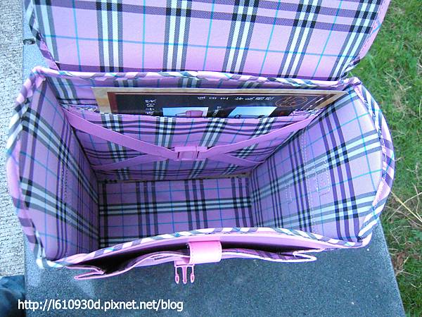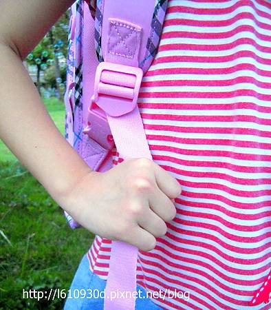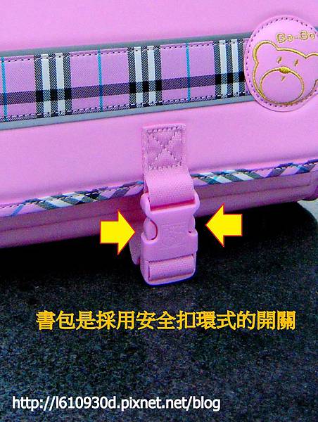 書包是採用安全扣環式的開關,只要輕輕一壓就可以打開了
